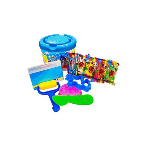 اقلام همراه5 رنگ خمیر 22 گرمي ، ،چاقوي كوچك،2 قالب، وردنه كوچك ، سفره ، بروشور