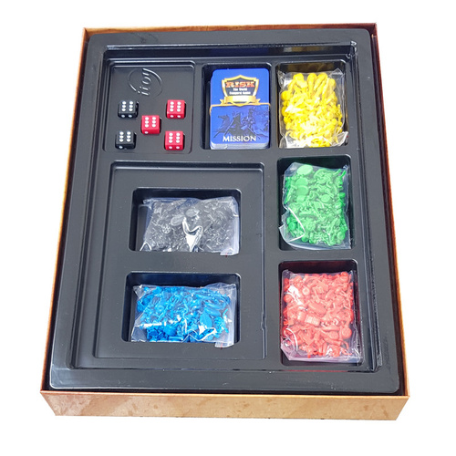 «ریسک» یک بازی تختهای محبوب و قدیمی است. بازی در سبک استراتژی نوبتی ساخته شده. بازی کردن ریسک هم به مهارت وابسته است و هم به شانس. در حالیکه در بازی هدف بسیار سادهای دارید، برای رسیدن به آن باید تاکتیکهای مختلفی را پیش بگیرید. هدف بازی، فتح تمام دنیا است. بازیکنندهها باید با نابود کردن دیگران، حکومتشان را روی نقشهی بازی گسترش دهند. هر بار که ریسک را بازی میکنید، با تاکتیکهای مختلفی مواجه میشوید. 2 تا 6 نفر میتوانند به صورت همزمان پای یک تختهی ریسک بازی کنند. نقشهی بازی به 42 ناحیهی مختلف تقسیم شده است. بازیکنندهها هر کدام از نقطهای شروع و سعی میکنند تا مناطق اطرافشان را به دست بگیرند. قوانین و سیستمهای ریسک، همگی با حساب و کتاب و روی اصول خاصی نوشته شدهاند. با توجه به تعداد بازیکنندهها، هر نفر تعدادی مهرهی ارتش را به خود اختصاص و آنها را روی نقشه قرار میدهد. بازیکنندهها باید حواسشان به مرزهایشان باشد و نیروهایی را در این نقاط قرار دهند تا بتوانند از حملهی دیگر بازیکنندهها جلوگیری کنند. اگر بازیکنندهای بتواند کنترل یک قاره را به دست بگیرد، نیروهای ارتش بیشتری دریافت میکند و قدرتمندتر میشود. این بازی فکری دارای جنبههای مختلفی است که میتوان به بازی کارتی، معمایی و حافظه اشاره کرد. Risk به خاطر اینکه به زمان زیادی احتیاج دارد، بیشتر برای نوجوانان و بزرگسالان توصیه شده است. این بازی در کنار هیجان، اهداف آموزشی هم دارد. از اهداف آموزشی آن میتوان به آشنایی با جغرافیا و نقشهی جهان، آشنایی با فنون و تکنیک نظامی و آشنایی با استراژیهای مدیریتی اشاره کرد. در این بازی استراتژیک و نظامی، نیروهای خود را از قاره ای به قاره دیگر جابجا کنید و با حملات شجاعانه دشمنان خود را غافلگیر کنید ولی مراقب دور و بر خود باشید. رقیب شما هم میجنگد تا کشورهای تحت سلطه شما را فتح کند. ارتش خود را تقویت کنید سپس با ریختن تاس حمله را آغاز کنید و تمام 42 کشور جهان را فتح کنید تا بر دنیا مسلط شوید.